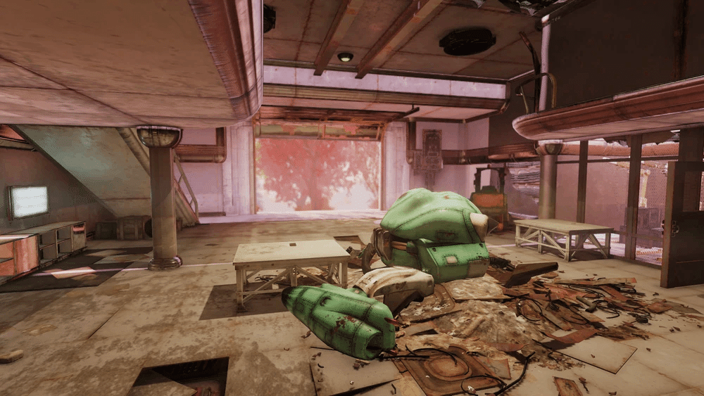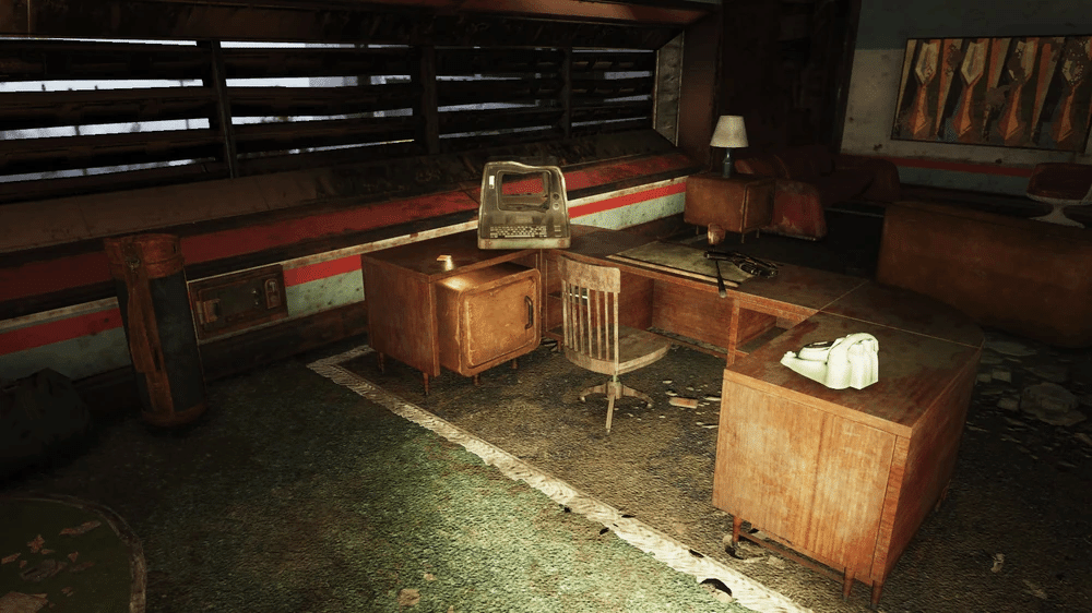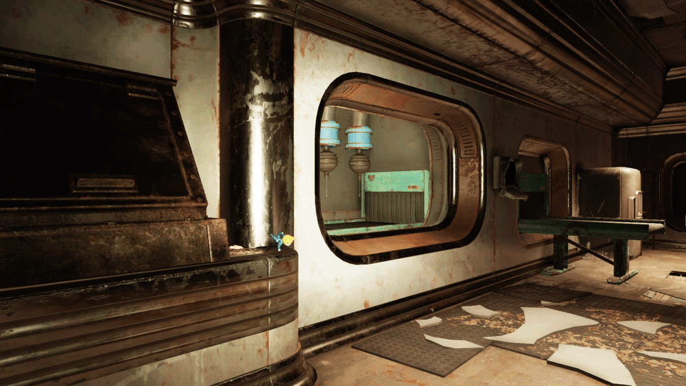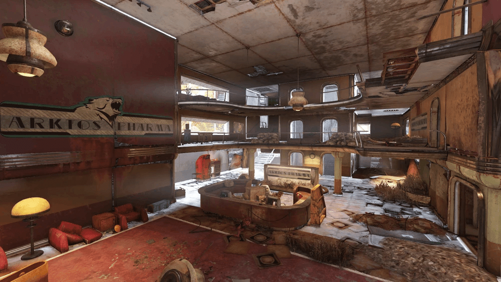 これは多くのソファと座席があり待っている間に座れるアトリウムエリアで、ヌカ・コーラ マシン と医療物資販売機 があります。