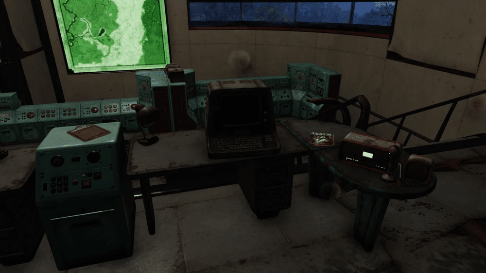 壁にアパラチアの大きな地図2つ、カーゴボット制御端末、雑多な戦利品が入ったトランクがあります。
