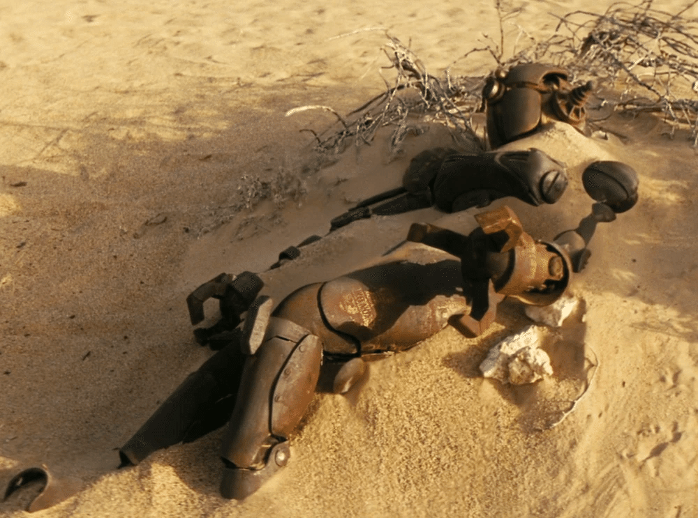 『Fallout』TVシリーズのエピソード「The Target」に登場する破壊されたアサルトロンの小道具は、実際にはNo Sleep Till Cosplayによって制作されたファンメイドの衣装です。