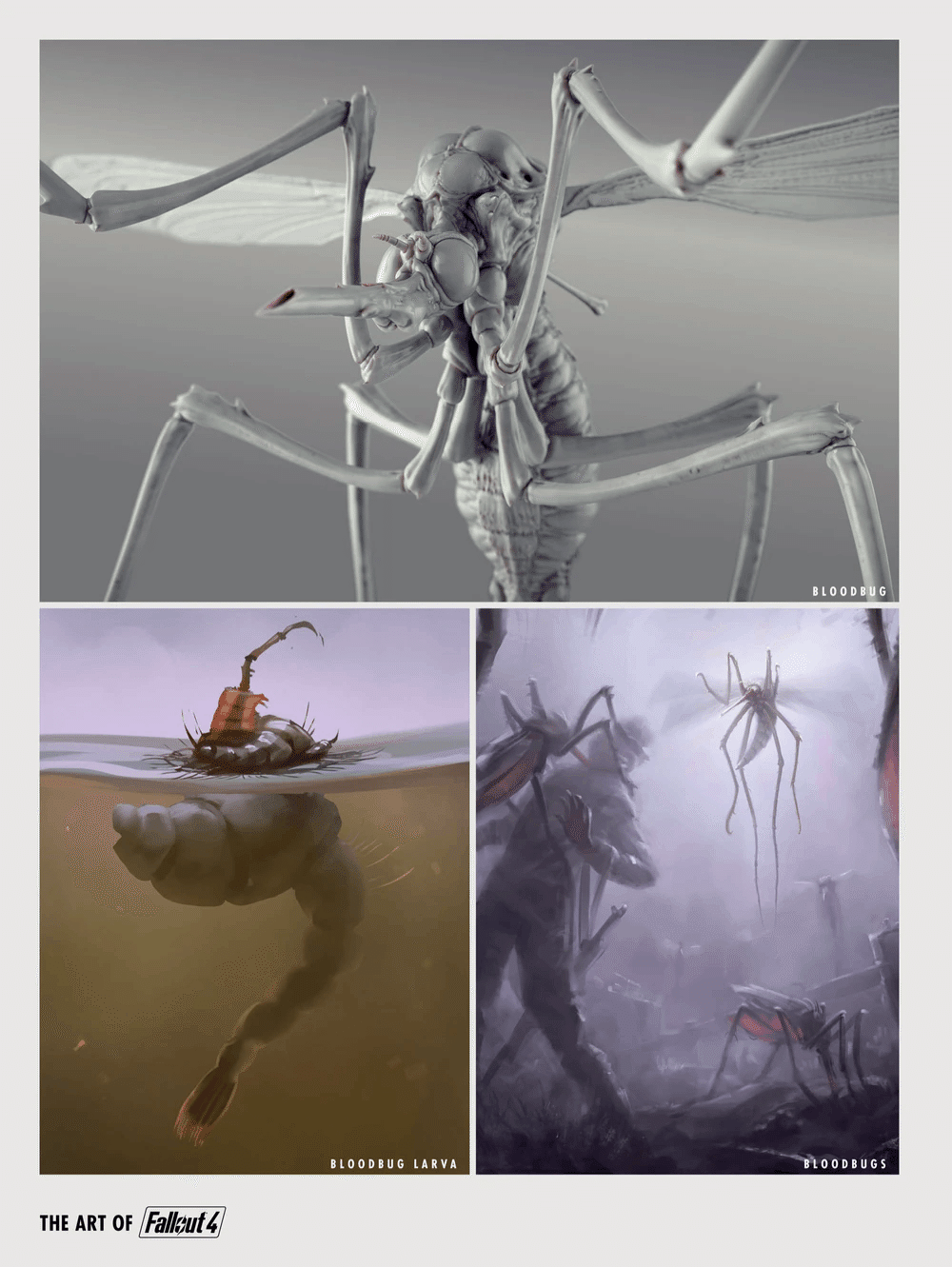 これは Fallout 4 の開発において最初に設計・構築された昆虫であり、飛行生物のAI挙動のプロトタイプを作成するために使用されました。