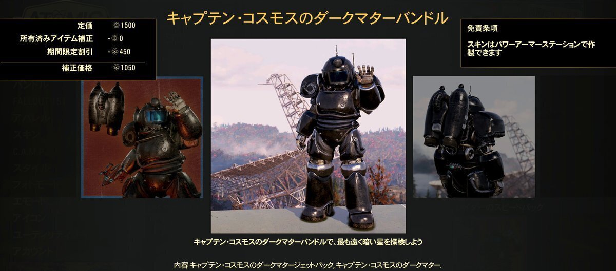 Fallout76では2つのパワーアーマー塗装で登場していて人気です。