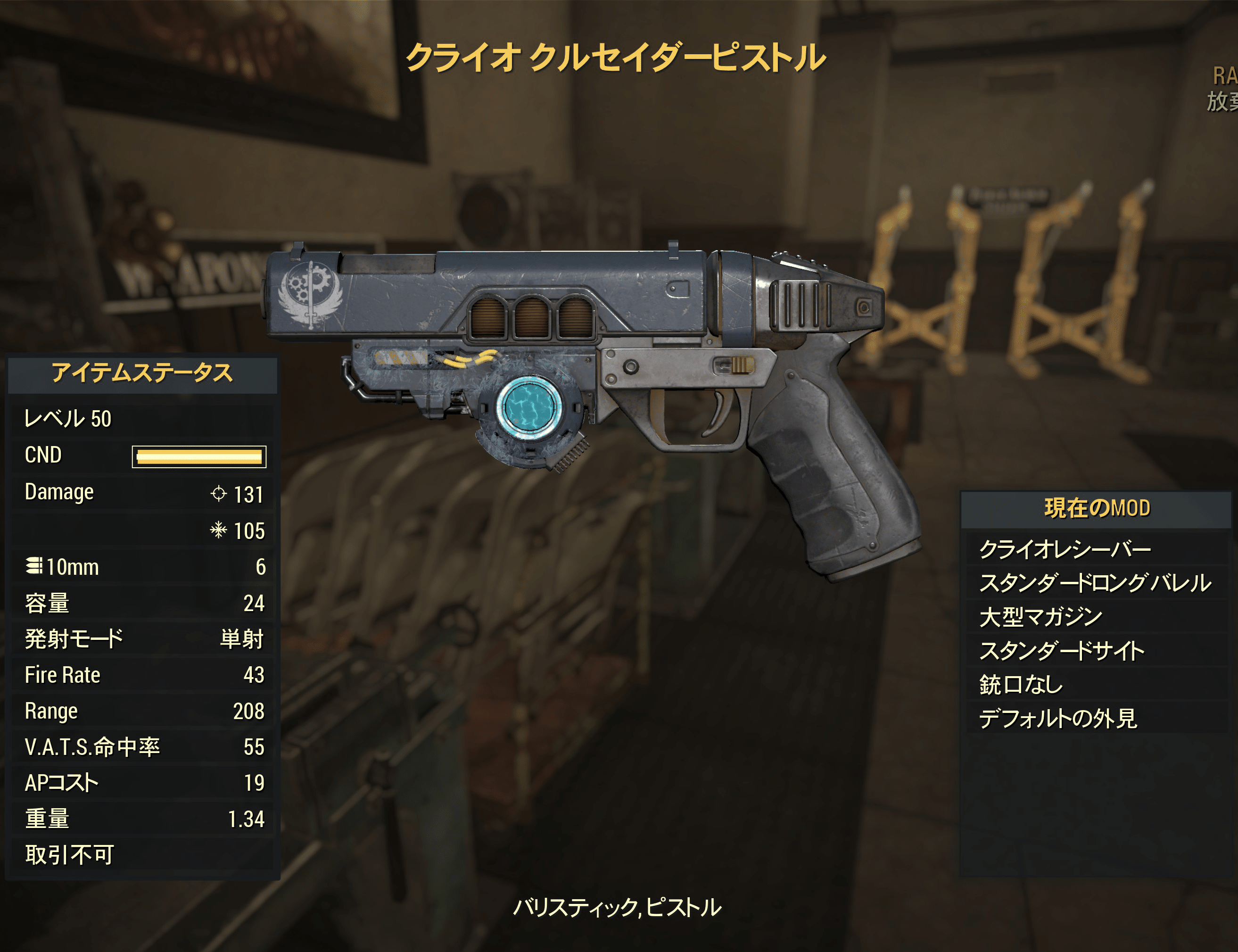 クルセイダーピストルは、10mmピストルよりも基本ダメージが高く、44ピストルよりも連射性能に優れているため、ピストルビルドにおいて非常に強力な選択肢となります。