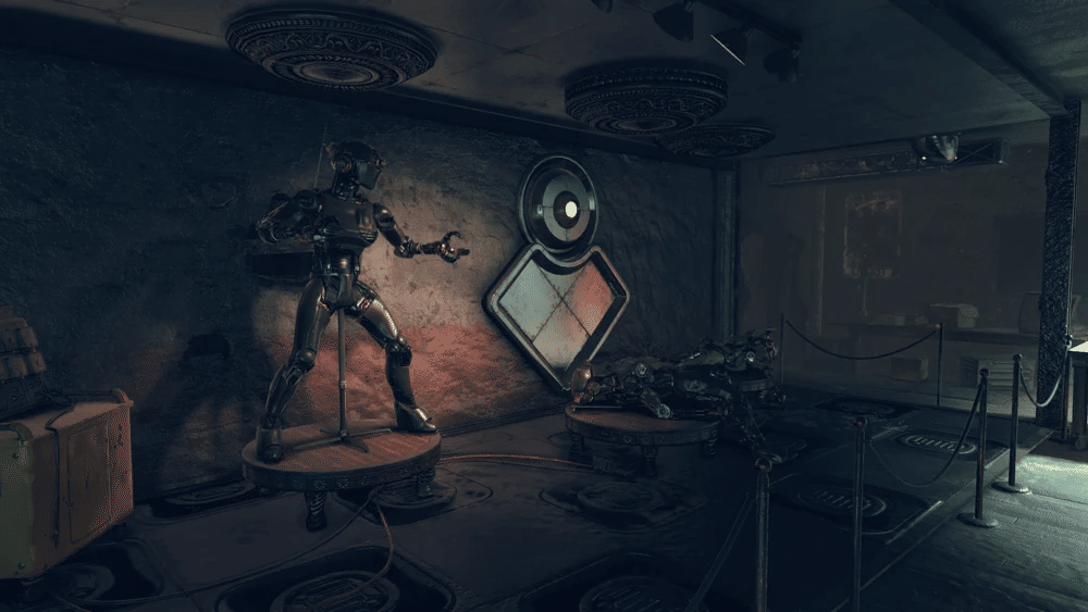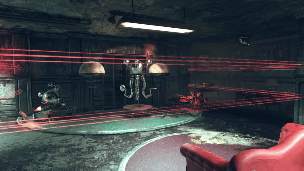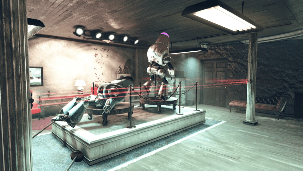 ショールーム内のロボットたちは、レーザー・トリップワイヤーを作動させない限り敵対しません。