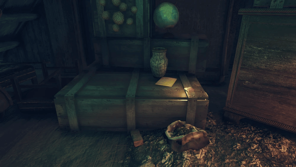 ダンカン氏への謝罪:アティックの長い木箱の上にあるメモです。