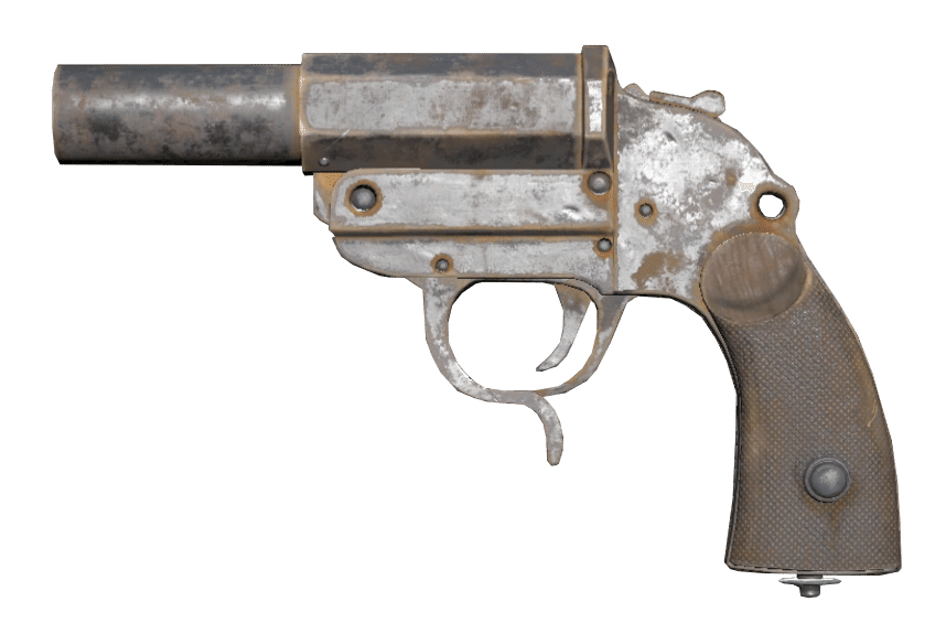 フレアガンは中折れ式の単発武器で、戦闘用ではなく(空に向かって発射することで)信号を送るために設計されています。