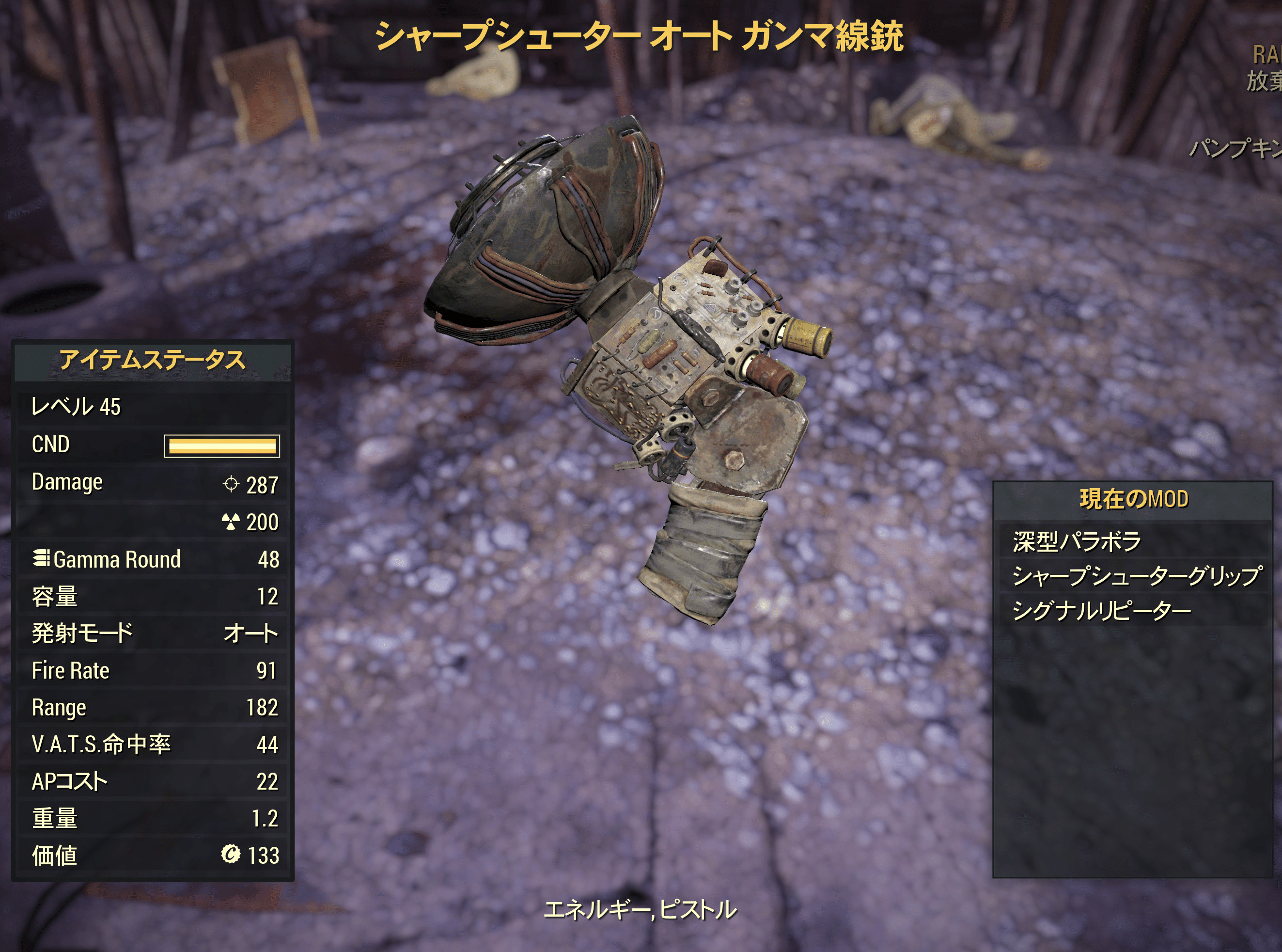 ガンマ線銃は、実弾、放射能、そして(改造により)範囲エネルギーダメージを与えるピストルです。