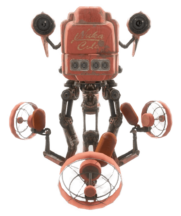 胴体がミニチュアのヌカ・コーラマシン型で、腕のファンからヌカ・コーラを噴射して客を楽しませていました。