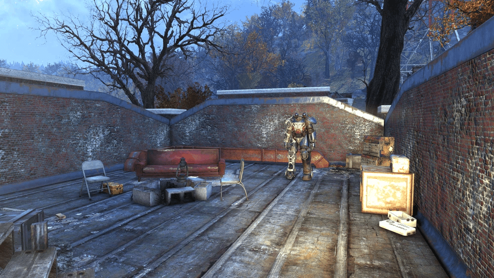 この区画の北には、パワーアーマーが出現する可能性のある開かれたガレージがあります。