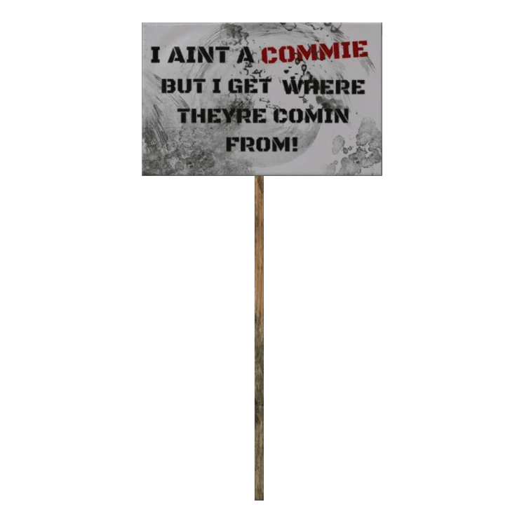 "I aint a commie but I get where theyre comin from!"(俺は共産主義者じゃないが、彼らの気持ちは分かる!)