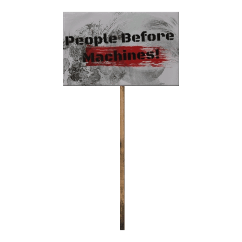 "People before machines!"(機械よりも人を!)