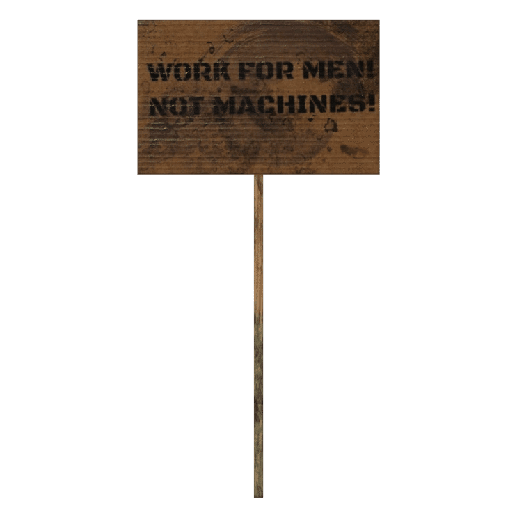 "Work for men! Not machines!"(仕事は人間のために!機械のためではない!)
