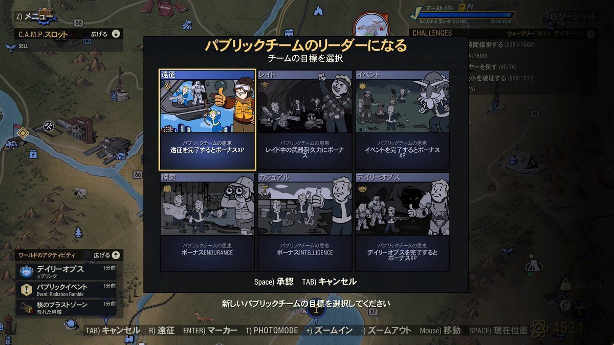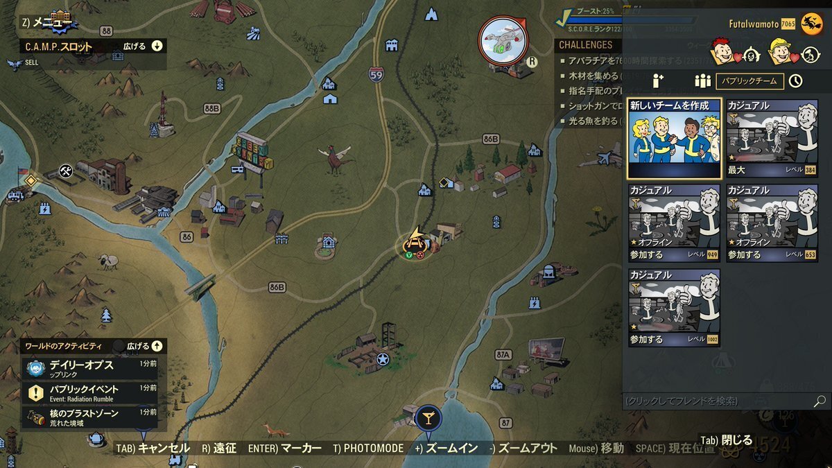 結論を言うと何も分からない初心者でもパブリックPTのカジュアルを建てたり入ったりしておけば経験値が入るのが多くなったり、パーティー所属中に発動する変異やPerkが発動するようになります。