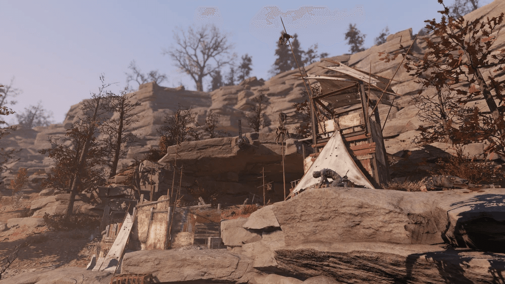 ザ・クロスヘアは、元々アパラチアの旧レイダーたちが、スナイパーに優れた見晴らしを提供する場所として、特に人里離れた森の片隅に設置したものです。ブラッドイーグルがこの地域に到着した際、彼らはこの拠点を自分たちのものとして占拠しました。