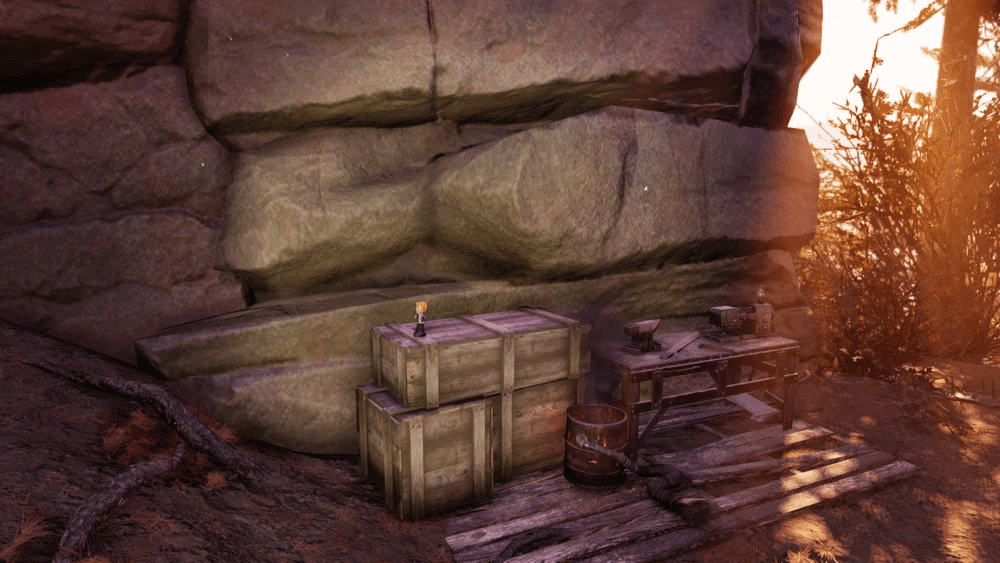 キャンプ内には、アーマー作業台と武器作業台が見つかります。