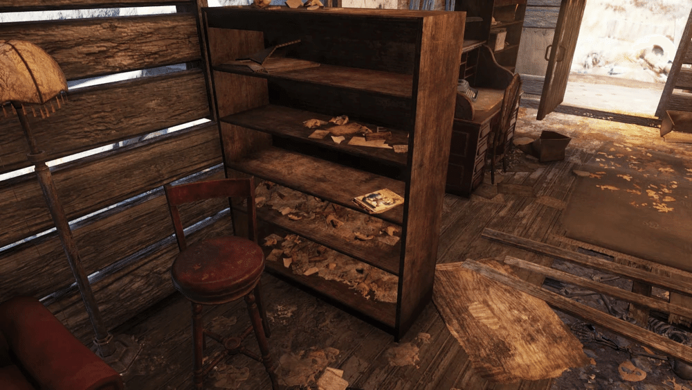 Wastelandersアップデートで、外観が変更され、現在住んでいるブラッド・イーグルスが追加されました。アップデート前は西側のキャビンにミニ・ニュークが見つかりましたが、削除されました。