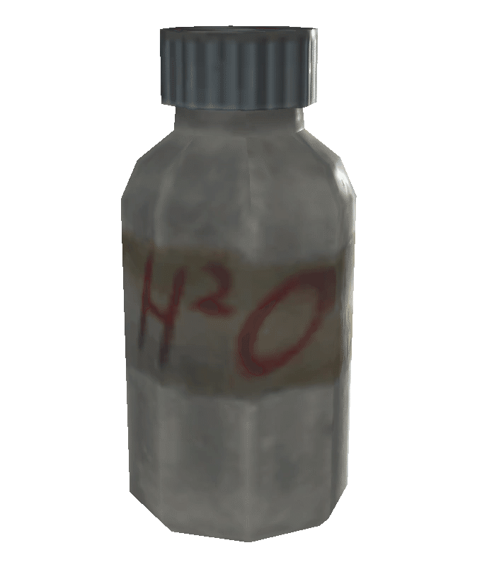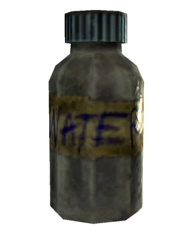 グールがよく患う病気の治療薬として、グリフォンがアンダーワールドで販売している、通常の放射能汚染された水をAqua Cura(アクア・クーラ)のボトルに偽装したものです。
